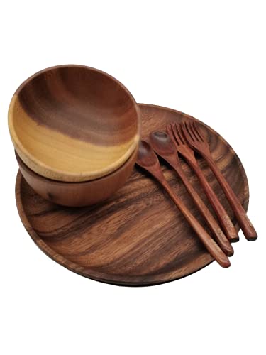 8-piece High Quality Wooden Dinnerware Set for 2, High Quality Wood Plates, Bowls, Spoons and Forks – Easy to Clean, Durable, and Lightweight – Great for Serving or as a gift! The KitchenKuya 8 pc Wooden Dinnerware Set will undoubtedly impress that special any person! This Set includes: 2 Acacia Wooden Plates 25 cm 2 Acacia Wooden Bowls 12 cm 2 Nanmu Wooden Spoons 17 cm 2 Nanmu Wooden Spoons 17 cm CARE INSTRUCTIONS: ❗️Handwash ONLY! This dinnerware set will have to NOT be put in the dishwasher, microwave, freezer or the oven. ❗️ ❗️Gently wash product before the usage of❗️ ❗️Do NOT use steel wool, harsh detergents or abrasive cleansers which may scratch the surface of the wood plates.❗️ ❗️Do NOT soak product in water❗️ Optional: Wipe oil at the surface of products to take care of the lifetime
