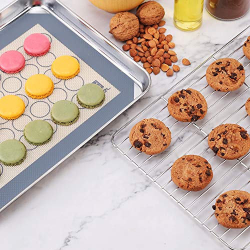 MULTI-USEPlace the silicone mat inside the cookie sheet pan and cook food on top or choose to bake items directly on the pan and use the rack for cooling cookies, cake, and more. |