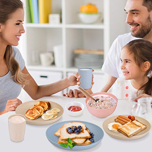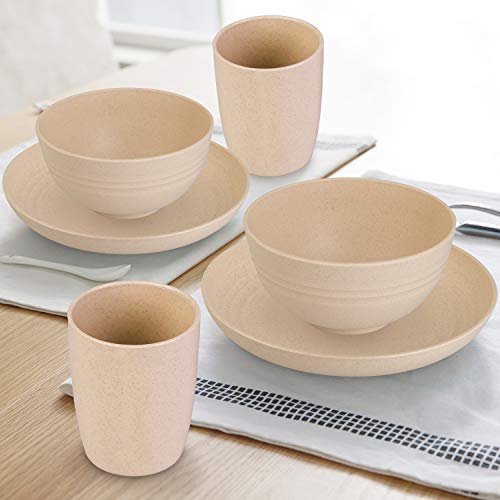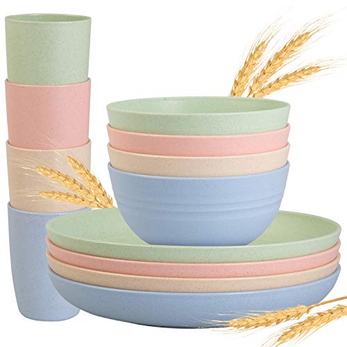 Cainfy Wheat Straw Dinnerware Sets for 4, 12PCS Unbreakable Lightweight Reusable Dinner Plates Camping Bowls Set for…