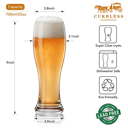 CUKBLESS Pilsner Glasses Set of 4 – Classics Beer glasses – Craft Wheat Beer Cup, Reusable, Dishwasher Safe, 25 oz