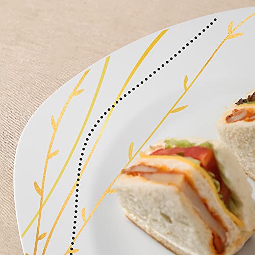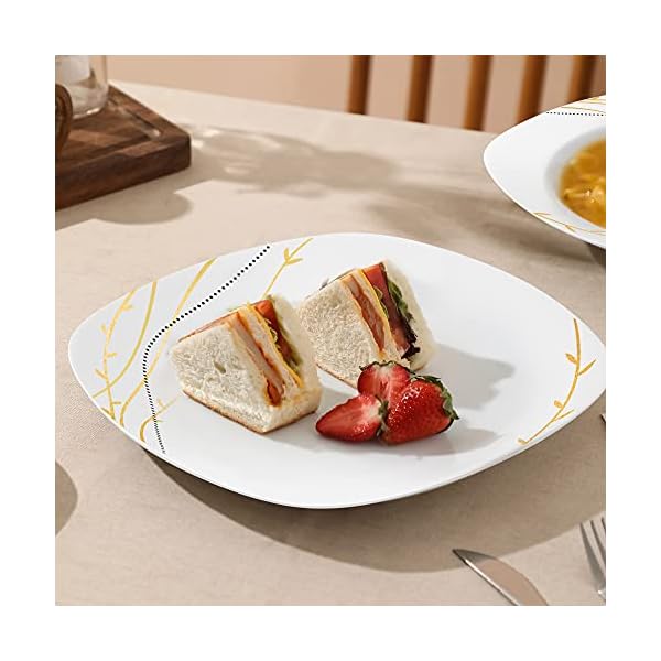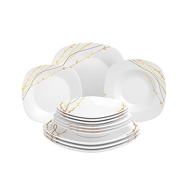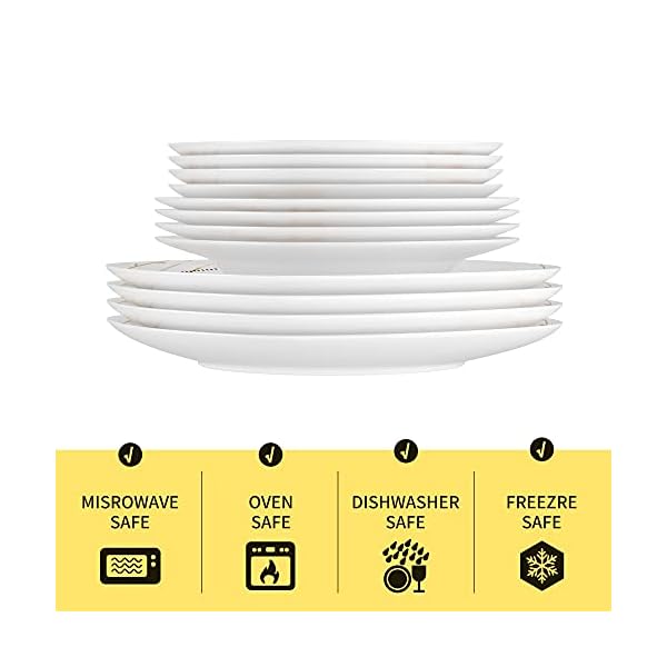 DANSHER Porcelain Square Dinnerware Plate Set, Set of 12 Ceramic Dinner Plates with Wicker Pattern, White Soup/Salad Plates (4 9.6-inch Dinner Plates, 4 8-inch Soup Plates, 4 7-inch Salad Plates)