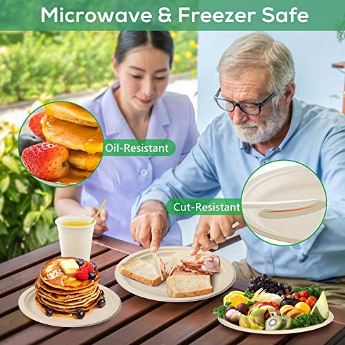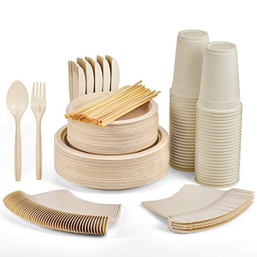 Gezond 350pcs Compostable Paper Plates Set Eco-friendly Heavy-duty Disposable Paper Plates Cutlery Includes…