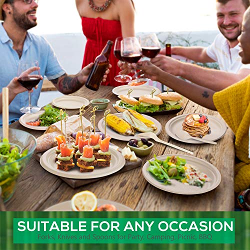 Most people choose this compostable dinnerware kit as a replacement for conventional plates and cutlery when preparing family meals, wedding, parties and some other events. Save clean-up time by throwing them out after the use of, release your hands and can spend more time with your family & friends.