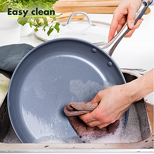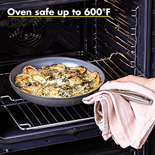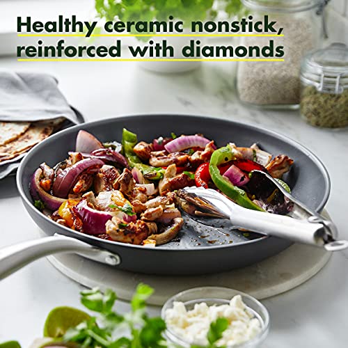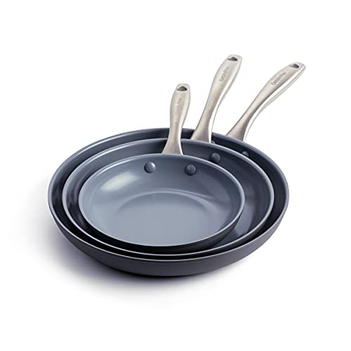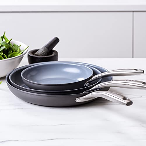 GreenPan Lima Hard Anodized Healthy Ceramic Nonstick 8″ 10″ and 12″ Frying Pan Skillet Set, PFAS-Free, Oven Safe, Gray