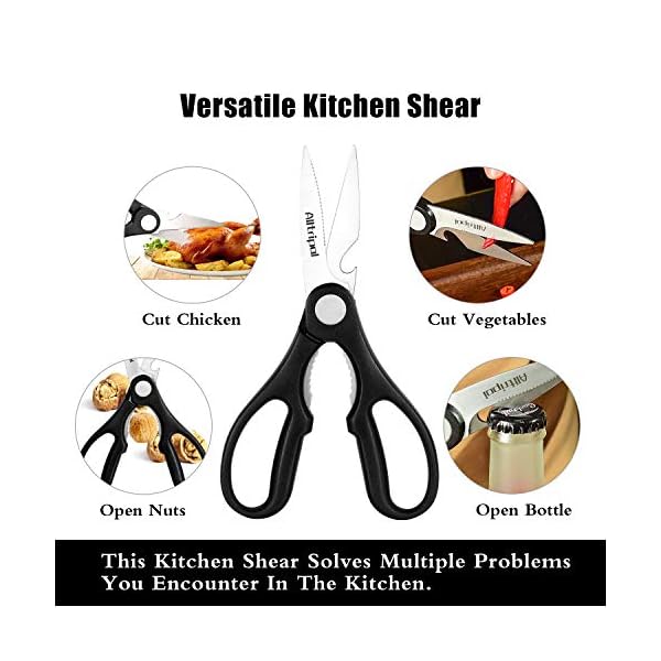 Our kitchen scissor can help you solve many problems in the kitchen. Such as: cut the chicken; cut the pepper; cut the fish; open the nut ; open the beer, etc.