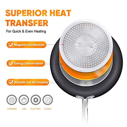SCRATCH RESISTANT MULTIPLE LAYER NON STICK COATING – Michelangelo Nonstick 3 Quart Sauce pan is perfect for cooking/re-heating vegetables, sauces, pasta or soup. The superior Ceramic & Titanium interior makes it ideal for use low to medium heat with minimum oil and lots of flavor. Cleans up easily.