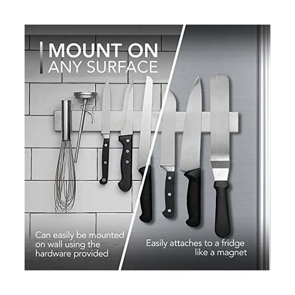 ★ GREAT FOR DISPLAY: This well-designed stainless steel knife bar is a must-have in every kitchen or craftsmen’s workspace. Easily access your knives or tools without having to search all over the place or get creative and artistically display metal pieces for wall décor.