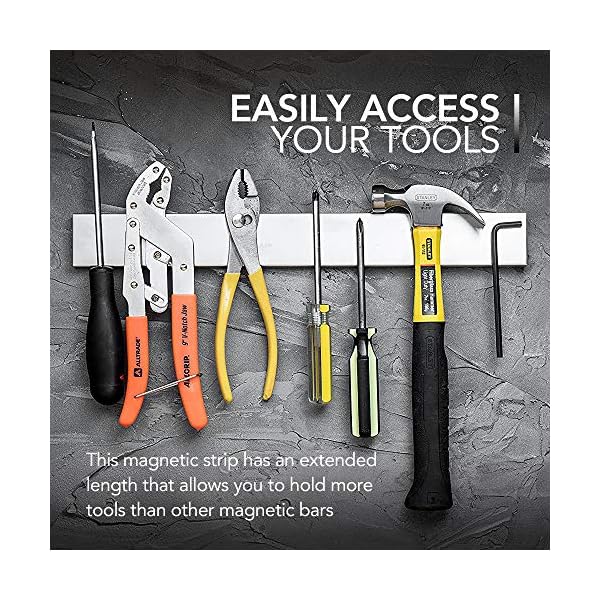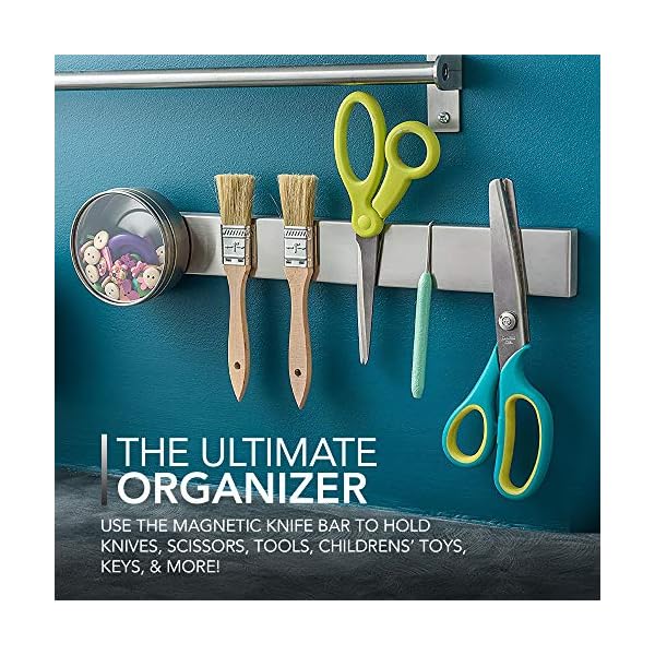 ★ ORGANIZE IT ALL: This magnetic strip has an extended length that permits you to hold more knives than most knife blocks on the market whilst still being small enough to versatilely fit into many nooks and crannies in your kitchen or workspace. Use the magnetic knife storage strip to hold knives, scissors, tools, children’s’ toys, keys, and whatever else You'll be able to think of as the ultimate organizer.