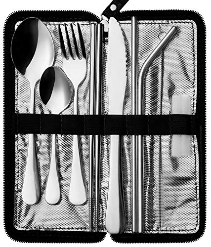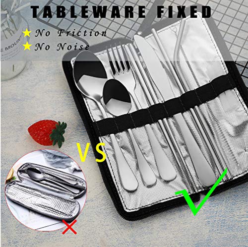 Portable Travel Utensils, Reusable Silverware with Case for Fixing Tableware, 9 Pieces Stainless Steel Stable Flatware…