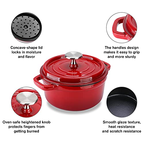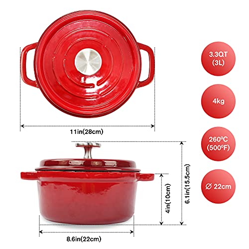 🔥【Premium Enameled Cast Iron】The 3.3 qt enameled cast iron dutch oven cookware with lid for braise, bake, broil, saute, simmer, roast and bread baked;Smooth enamel bottom works on all stovetops, including gas, electric, glass, ceramic, induction, and halogen