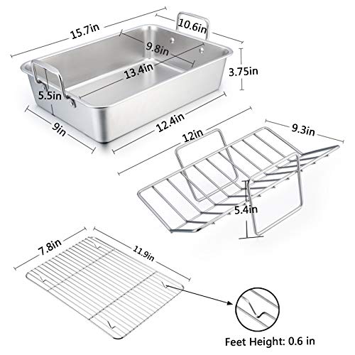 【HEALTHY】Both the roasting pan and rack are made of 100% pure stainless steel without any toxic coatings, Great replacement to unhealthy aluminum roaster pan and rack, Heavy gauge and well construction for holding heavier food, Durable for an enduring life