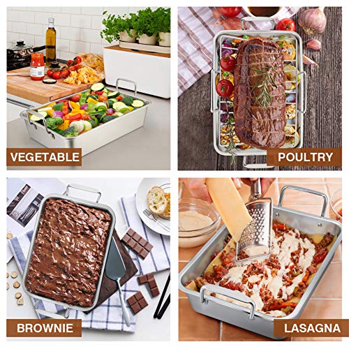 Roasting Pan with Rack, P&P CHEF 14 Inch Stainless Steel Roaster Lasagna Pan & V-shaped Rack & Roasting Rack, Non Toxic…