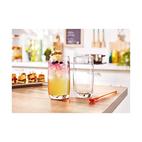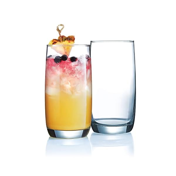 SET OF 16 DRINKING GLASSES: Includes 8-17 oz Highball Glasses 8-14 oz Tumbler Glasses which were temper treated for maximum durability. Ideal for Water, Juice, Beer, Wine, and Cocktails