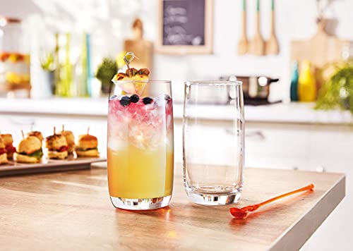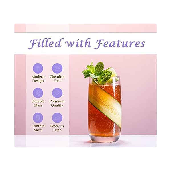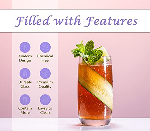 SET OF 16 DRINKING GLASSES: Includes 8-17 oz Highball Glasses 8-14 oz Tumbler Glasses that have been temper treated for maximum durability. Ideal for Water, Juice, Beer, Wine, and Cocktails