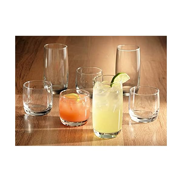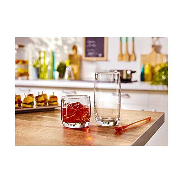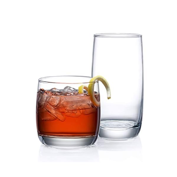 Le’raze Set of 16 Drinking Glasses, Heavy Base Durable Glass Cups – 8 Highball Glasses (17 oz) and 8 Rocks Glasses (14…