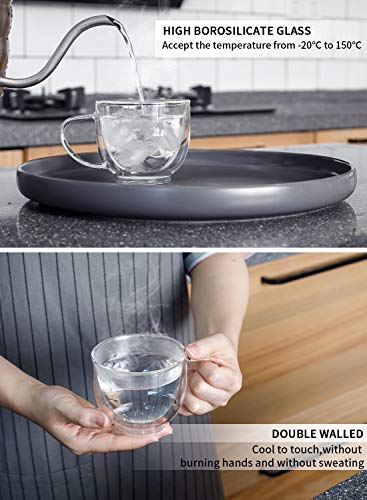 Sweese 419.101 Glass Cappuccino Cups – 7 Ounce Double Walled Coffee Glasses for Specialty Coffee Drinks, Latte, Cafe…