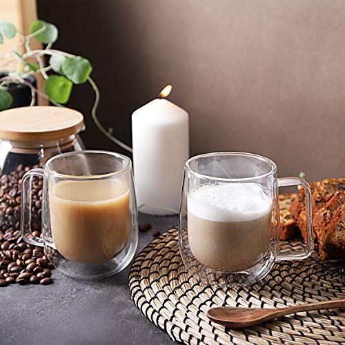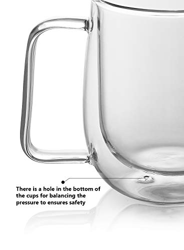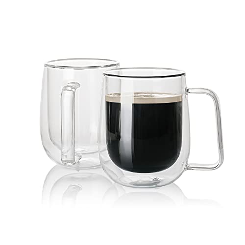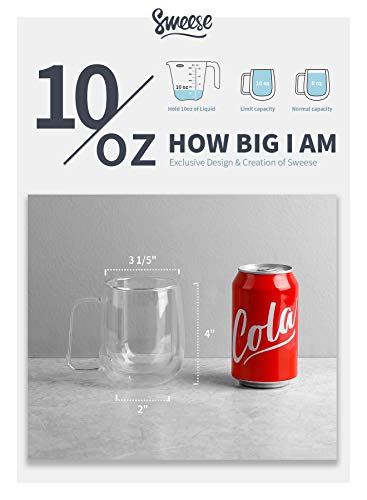 Sweese 423.101 Glass Coffee Espresso Cups – 10oz Double Wall Coffee Glasses Cups with Handle, Perfect for Hot Beverages…