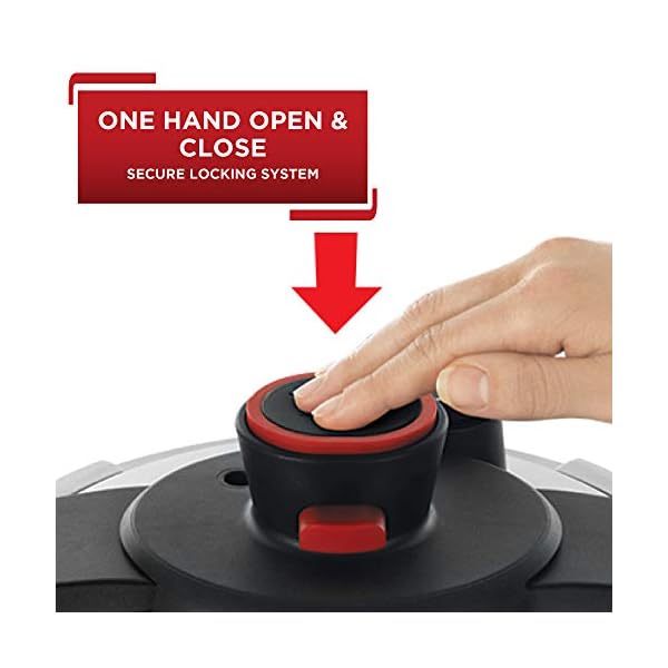 May not open when in use; one hand system for risk free opening and closing; variable steam release valve for added keep an eye on