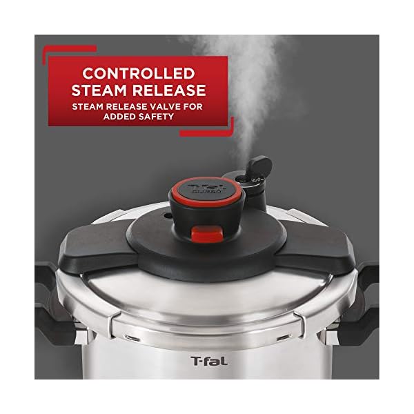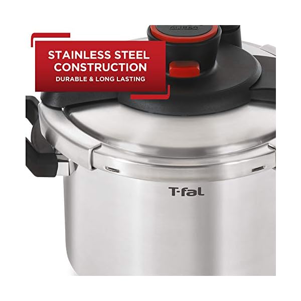 Make healthy, delicious meals in a fraction of the time with this T fal Clipso pressure cooker. In comparison to standard cooking methods, the pressure cooker reduces cook times by up to 70% for fast results—without the loss of valuable nutrients and flavor. The cooker’s roomy 6.3 quart capacity makes it easy to create large batches, whether preparing make ahead meals for the week or cooking for a crowd right through the holidays. The pressure cooker’s durable stainless steel construction ensures optimal cooking and long lasting performance, and its encapsulated base distributes heat evenly and can be utilized safely on any cooktop, including induction. Safety features include an innovative one hand system for easy risk free opening and closing, the inability to open when in use and under pressure, a variable steam release valve for added keep an eye on, and side handles for a safe grip. The Clipso stainless steel pressure cooker can go safely in the dishwasher (with gasket and pressure valve removed), and a steam basket and stand are included for multi level cooking, in conjunction with a recipe book with cooking tips and tasty ideas for getting started.Secure cooking: pressure indicator indicates over the top heat, just lower steam with its controlled release.