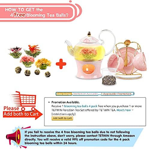 Loosen up & Refresh with TETWIN Beautiful Porcelain Tea Set: This tea cup set with saucers also includes an exquisite glass teapot, perfect for brewing both blooming tea and loose tea. You'll Loosen up at home and enjoy watching the flower tea blooming in the porcelain glass teapot! TETWIN tea gift sets for tea lovers can be a gorgeous addition to your kitchen cabinets. It may be widely used in parties like wedding, family reunion, birthday and tea party.