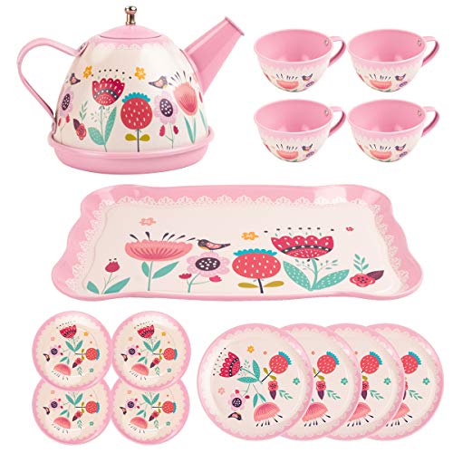 【ENDLESS FUN】Tin Tea Set is an ideal birthday or holiday gift to any young boy or girl. Highest for toy storage, room décor, picnics and other Princess Tea Time themed occasion.