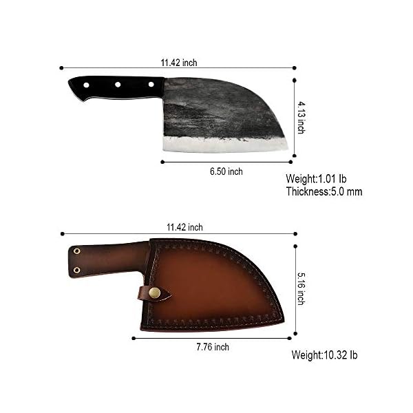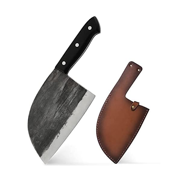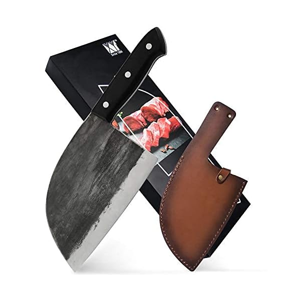 【Convenient To Carry】The butcher knife comes with an exquisite gift box and unique leather knife sheath to give protection to the knife blade, beautiful and more safety, and it also with a belt loop that can be attached to the belt for easy carrying when the usage of outdoor. A good outdoor knife for BBQ, hunting and camping(There may have a smell of the leather sheath, please hang in a ventilated place for some days when you receive it.)